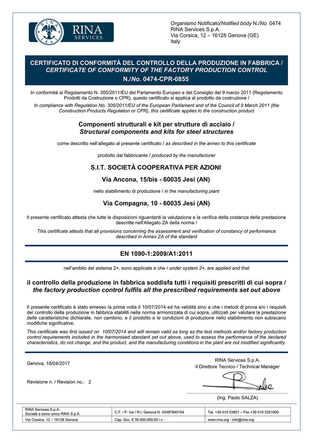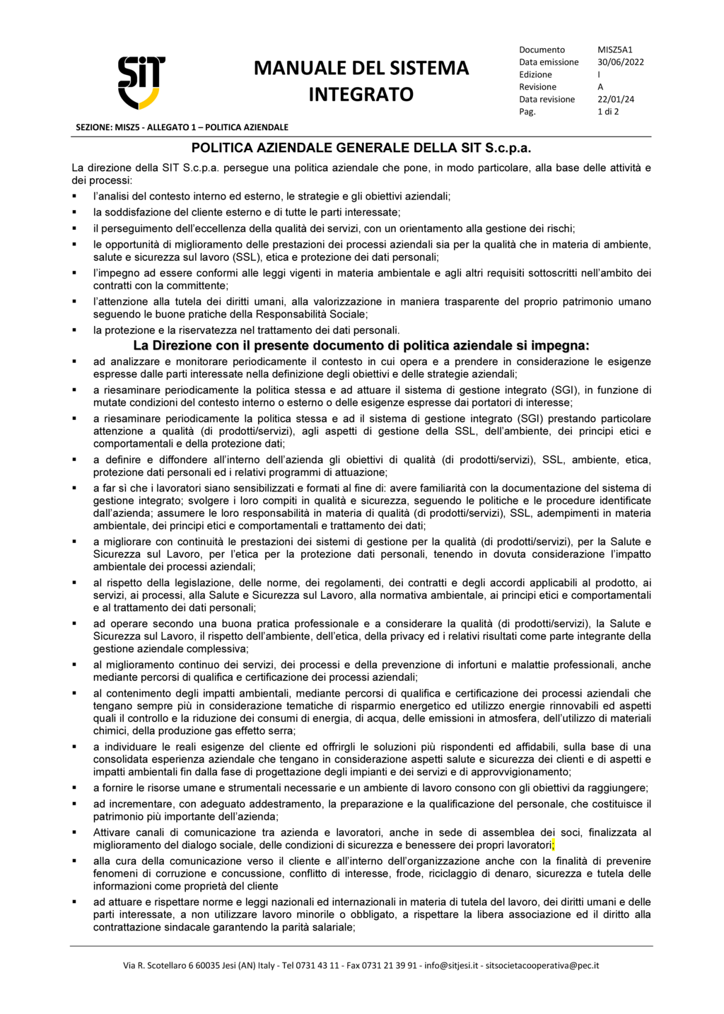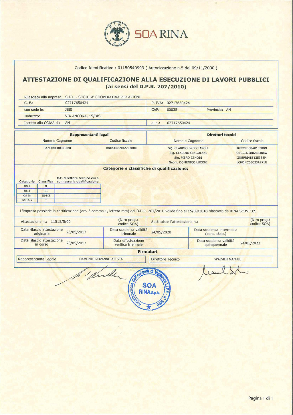 Il miglioramento è un obiettivo costante di S.I.T. ScpA; le certificazioni ottenute nel corso dell'attività ne sono la garanzia.