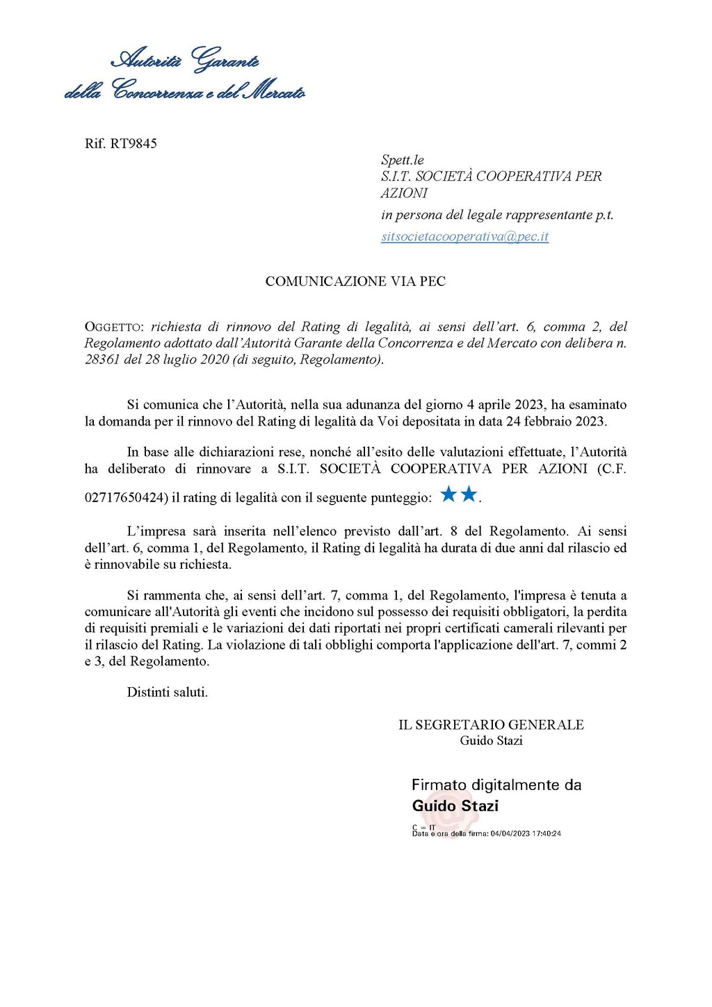 Rilasciato dall'Autorità Garante della Concorrenza e del Mercato (AGCM)